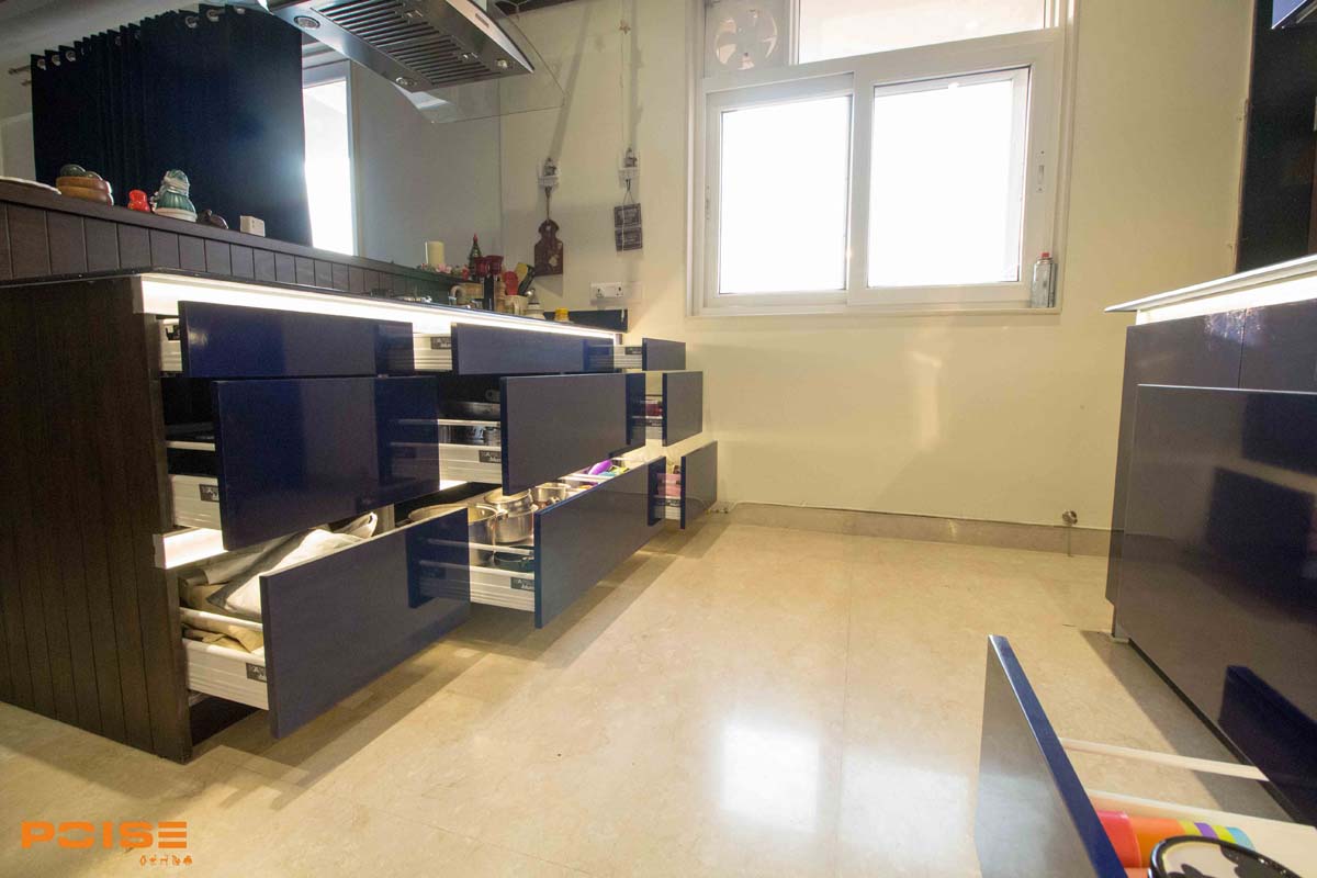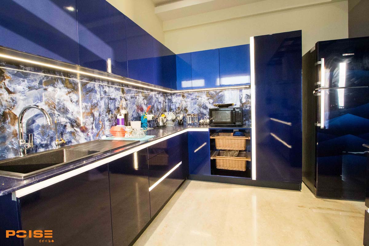 Here at Poise, we are counted amongst leading organizations, successfully engaged in putting forth excellent quality Pu Modular Kitchen Shutters that add a beautiful appearance in kitchen interiors. PU painted kitchens are typically the most premium kitchens with their regal smooth finish being the star of the show. These shutters are water- resistant and are available in a multitude of vibrant shades that last for a long time. The surface finish is available in high gloss finish and Superior Matt Finish. These shutters are easy to clean as well as maintain . It is a 11 step chemical process, each of which adds to the durability of the finished product. Polyurethane painting is a time taking process as multiple coats are applied and each of which have to dry completely before the next coat is applied. For a premium look your kitchen can get no better than having PU painted shutters to adorn your space.